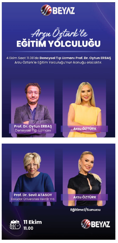 Önümüzdeki bölümlerde ise tanınmış Eğitimci ve Sosyolog Ali Koç, Deneysel Tıp Uzmanı Prof. Dr. Oytun Erbaş ve Üsküdar Üniversitesi Rektör Yardımcısı Prof. Dr. Sevil Atasoy izleyicilerle buluştu.