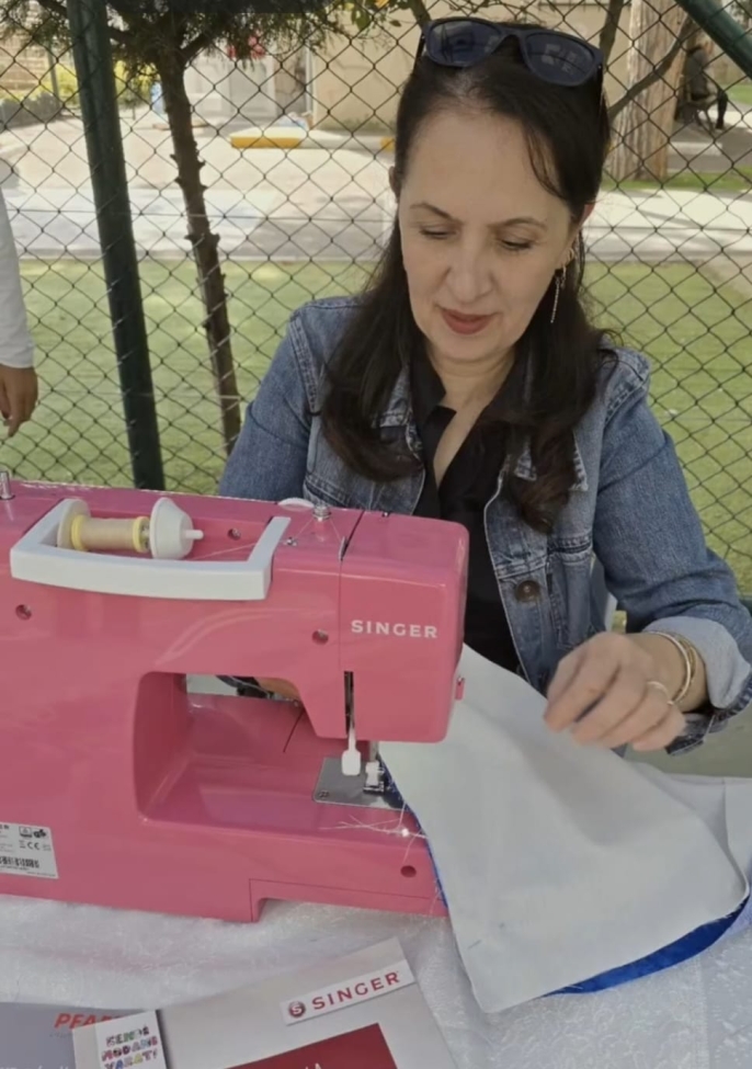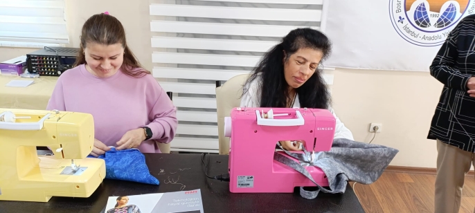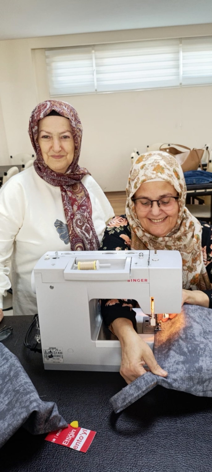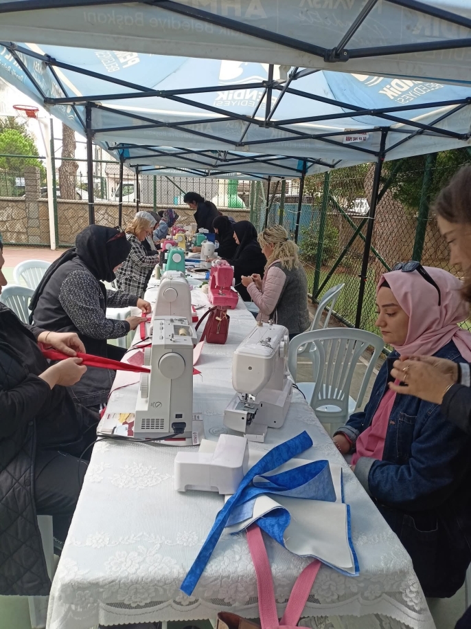 Bu etkinlikler kapsamında; ev hanımları ve genç kızlar çanta dikimi ile ilgili yeni beceriler kazanarak kendi çantalarını tasarladılar.