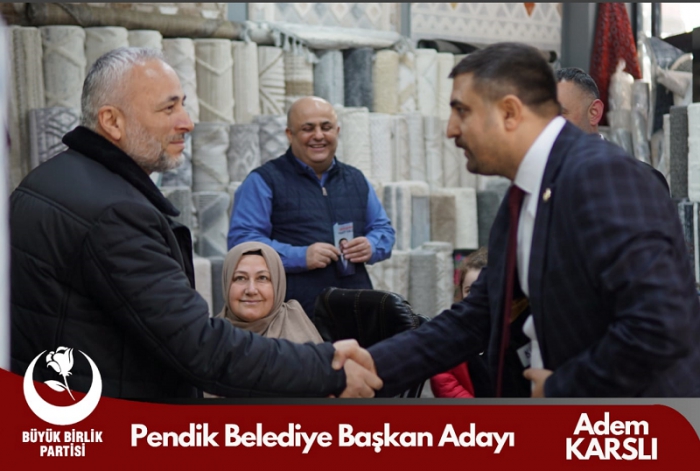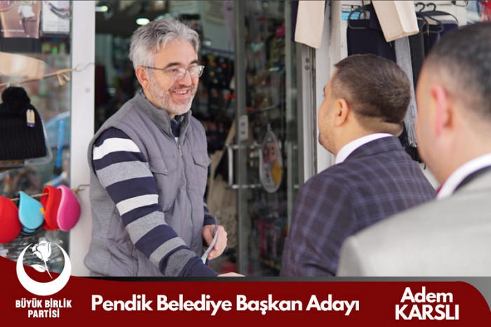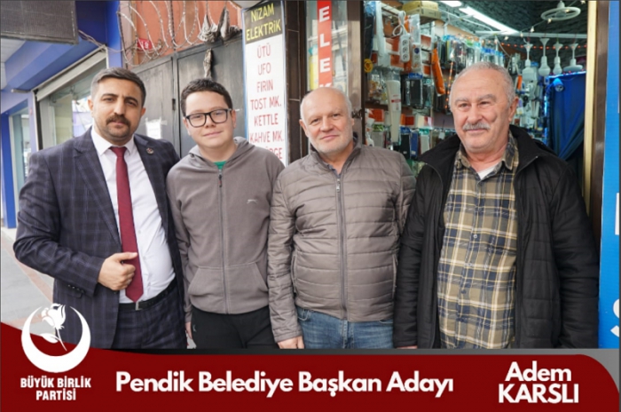 Eğitimci kimliği dolayısı ile ‘Adem Hoca’ olarak bilinen ve geniş bir çevre tarafından sevilip sayılan Büyük Birlik Partisi Pendik Belediye Başkan Adayı Adem Karslı seçim çalışmalarını yoğun bir tempo ile sürdürüyor. Söylemleri, ortaya attığı projeler, vatandaşla olumlu diyalogları dikkat çeken ve her geçen gün daha geniş kitlelere kendini ifade etme imkanı bulan Adem Hoca gazetemize yaptığı değerlendirmede; “Sahada vatandaşlarımızdan görmüş olduğumuz yoğun ilgi kendimize olan inancımızı pekiştirmekte. Gördüğümüz o ki; Pendik’in birçok ortak sorunu, özelde de mahallelerin temel problemleri bugüne kadar çözülebilmiş değil. Vatandaşlarımız mevcut yönetimden memnuniyetsiz ve yeni bir arayış içerisinde. Bu noktada Büyük Birlik Partisi alternatif olarak ön plana çıkıyor. İlçemiz ağırlıklı olarak muhafazakar bir seçmen yapısına sahip. Ve Rahmetli Genel Başkanımız Muhsin Yazıcıoğlu’nun halk üzerinde tartışılmaz bir etkisi var. İnsanlar bizi ve yapmak istediklerimizi daha yakından tanıyınca desteklerini artırıyorlar. Bu seçimlerde oldukça iddialıyız. Sandıktan çıkan en güçlü parti Büyük Birlik olacaktır. Tarihi bir oy ile tarih yazacağız” sözlerine yer verdi.