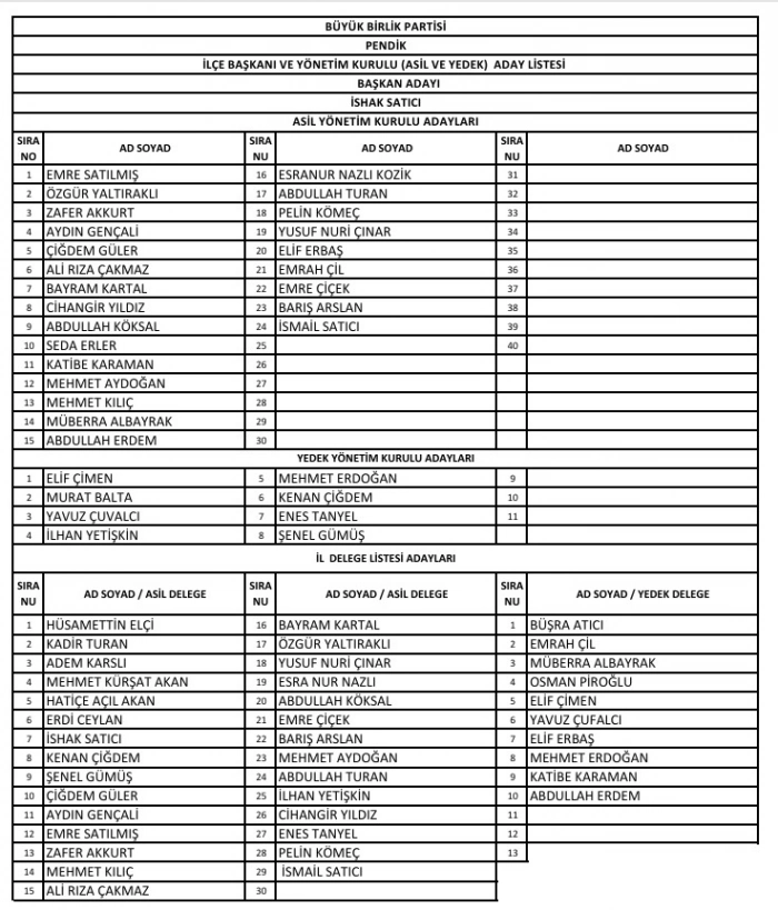 BBP PENDİK İLÇE BAŞKANLIĞI YENİ YÖNETİMİ ŞU İSİMLERDEN OLUŞTU: