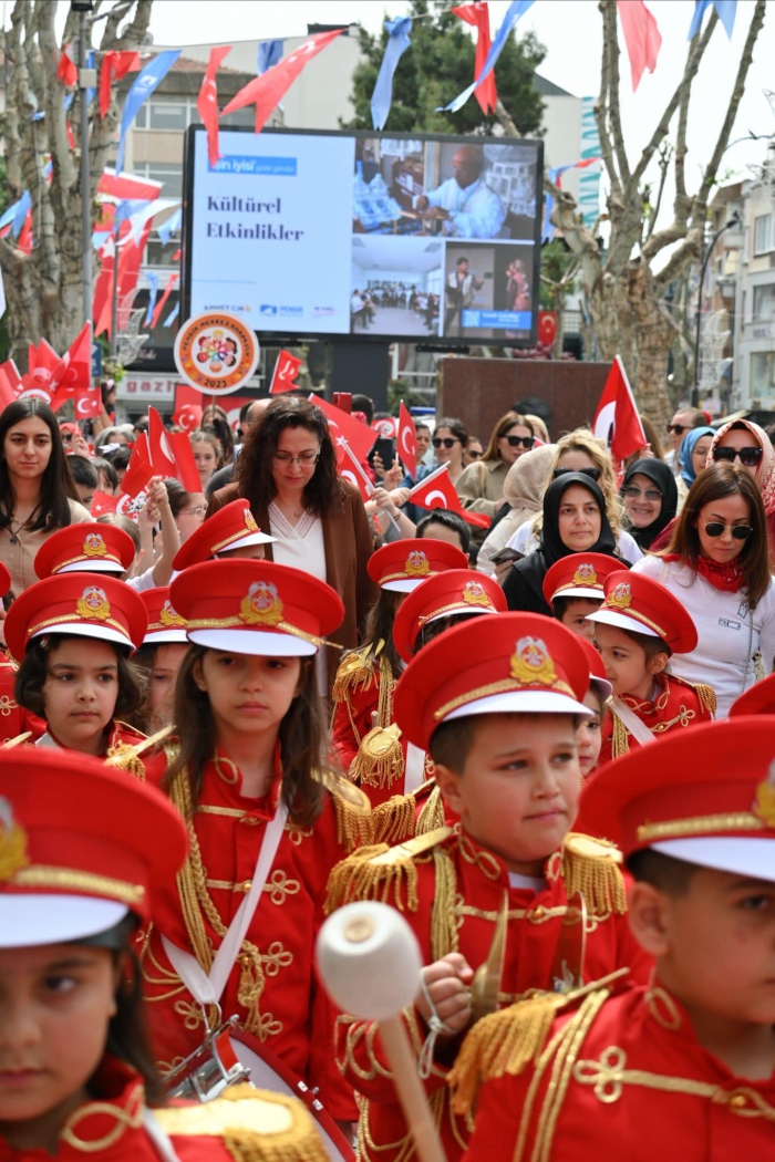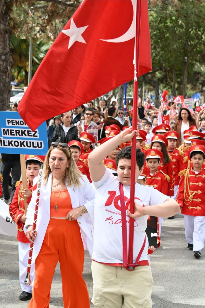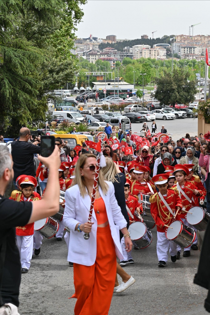 Pendik Merkez İlkokul bahçesinde gerçekleştirilen törenin ardından, öğrenciler Pendik çarşısında tur attı.