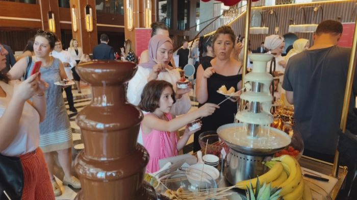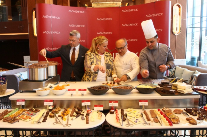 ÇİKOLATANIN SANATA DÖNÜŞTÜĞÜ BİR SEREMONİ 7 Temmuz 2025 Pazartesi günü, saat 12.00 – 14.00 arasında gerçekleştirilen bu özel “Çikolata Seremonisi”, Mövenpick’in İsviçre’den ilham alan eşsiz çikolata geleneğini gözler önüne serdi. Usta şeflerin ellerinden çıkan özel tarifler, tat, koku ve dokunun mükemmel uyumunu yansıttı. DEV ÇİKOLATA ŞELALESİ İLE GÖRSEL ŞÖLEN Etkinlik boyunca dev çikolata şelalesi, misafirlere sadece damak tadı değil, göz zevki de sundu. Çikolata heykel yapımı şovu ile şefler, çikolatanın estetik yönünü de sergilediler. KATILIMCILAR İÇİN ÖZEL ÇİKOLATA WORKSHOP’U