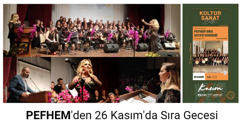 Başkanlığını Serdar Özalkak’ın yürüttüğü Pendik Folklor Halk Eğitim Merkezi Gençlik ve Spor Kulübü (PEFHEM) Türk Halk Müziği Korosu, sezon açılışında 26 Kasım Salı akşamı saat 20.00'da Yunus Emre Kültür Merkezi'nde Sıra Gecesi konseri verecek.