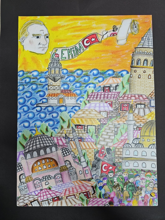 İl genelinde düzenlenen “6 Ekim İstanbul’un Kurtuluşu” konulu resim yarışmasında Pendik Kılıçaslan Ortaokulu 7-F sınıfında öğrenim gören Feyza Tezol, il birincisi oldu.