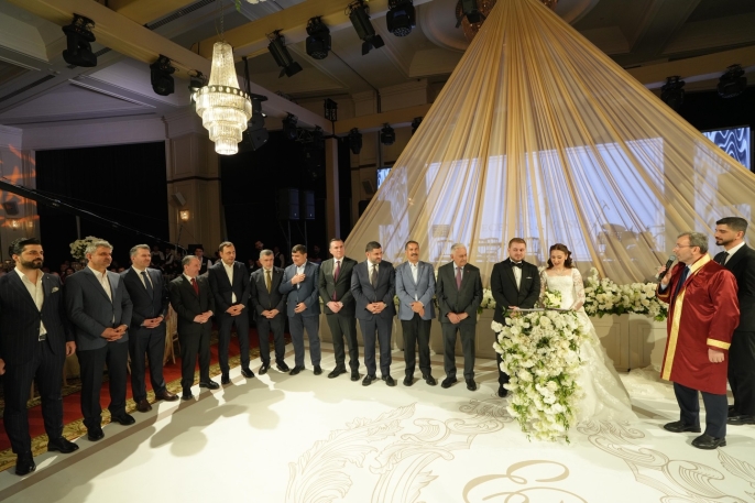 Siltaş Yapı Yönetim Kurulu Başkan Yardımcısı Murat Özdemir’in oğlu Yusuf ile Tek ailesinin kıymetli kızı Ecenur Hatice, düzenlenen görkemli bir törenle dünyaevine girdi. Genç çiftin mutluluğuna Türk Devletleri Teşkilatı Aksakallılar Heyeti Başkanı ve son Başbakan Binali Yıldırım başta olmak üzere, üst düzey protokol üyeleri ve çok sayıda davetli ortak oldu.