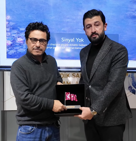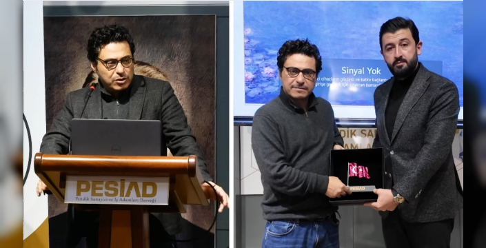 Programın ardından PESİAD Başkanı Cüneyt Battal, Mert Başaran'a plaket takdiminde bulundu.