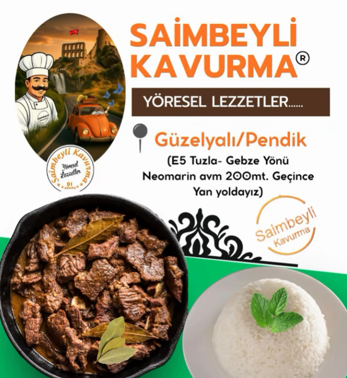 Bu köklü mutfak kültürünü büyük şehre taşıyan Saimbeyli Kavurma, Pendik Güzelyalı’da, E-5 karayolu üzerinde hizmet veriyor. Tuzla ve Gebze’ye yakın merkezi konumuyla dikkat çeken işletme, Neomarin AVM’yi yaklaşık 200 metre geçtikten sonra yan yol üzerinde yer alıyor.
