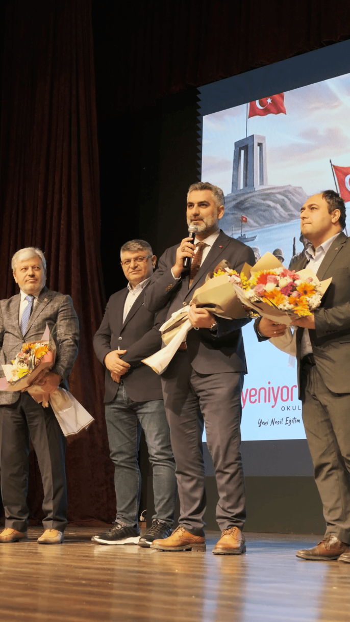 Programın finalinde çiçek ve plaketleri Pendik Yeniyorum Okulları Kurucusu Ramazan Akarsu takdim etti.