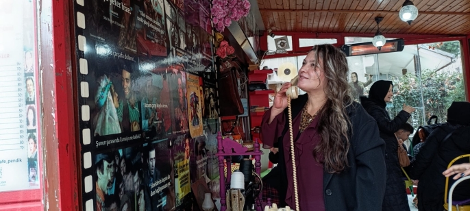 Masa üzerinde bulunan daktilolar, eski model telefonlar ve döneme ait aksesuarlar sayesinde mekâna adım atan misafirler, kendilerini adeta 1970’li yıllarda bir film setindeymiş gibi hissediyor. Yeşilçam’ın saflığı ve sıcaklığı, her köşede ziyaretçilere nostaljik bir yolculuk sunuyor.