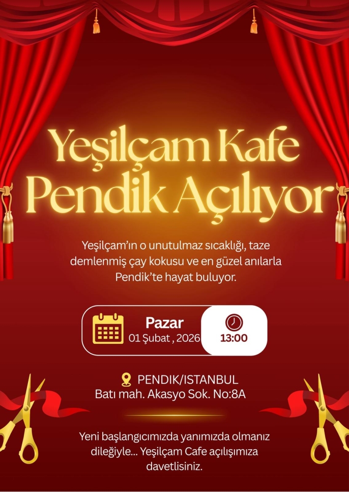 Yeşilçam’ın unutulmaz sıcaklığı, taze çay kokusu ve en güzel anılar, Pendik’te Yeşilçam Kafe’de hayat buluyor. Yeni dönemiyle misafirlerini ağırlamaya devam eden kafe, Batı Mahallesi Akasya Sokak No: 8A adresinde ziyaretçilerini bekliyor.