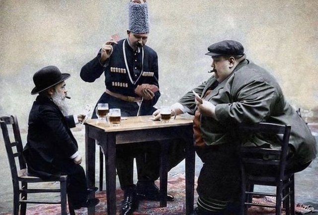 Avrupa’nın en kısa, en uzun ve en şişman adamı 1913’te birlikte kağıt oynuyor.