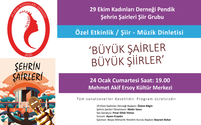 Şiir ve müzik dinletisi şeklinde iki bölüm halinde gerçekleştirilecek programın sunumunu Aysen Eraydın yapacak.
