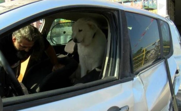 Kaza sırasında otomobildeki köpek korkudan araçtan çıkmadı