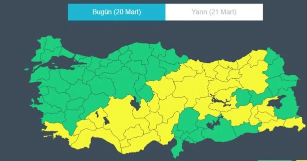 Meteoroloji Genel Müdürlüğü, 33 il için sarı kodlu uyarıda bulundu.