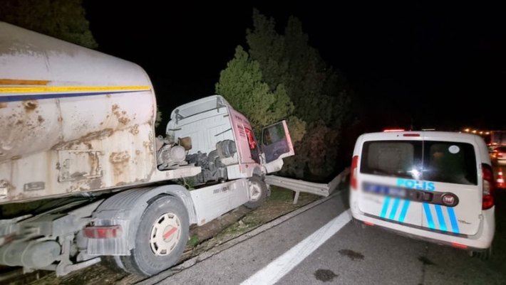 Adana’da sürücüsünün kontrolünden çıkan TIR, çelik bariyeri aşıp refüjdeki ağaca çarparak durabildi. Yapılan incelemede TIR sürücüsünün kalp krizi geçirerek hayatını kaybettiği, sonrasında ise kazanın meydana geldiği değerlendiriliyor