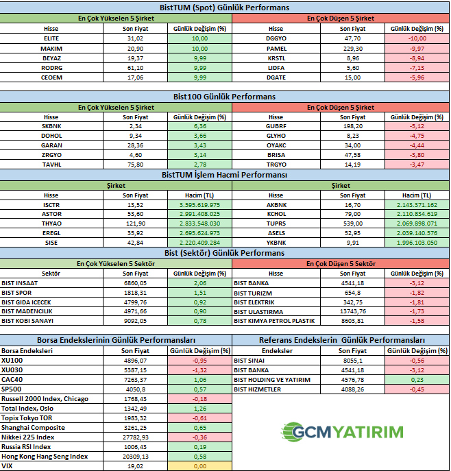 BIST100 endeksi günün %0.95 düşüşle tamamlarken, Bankacılık endeksi %3.12 ile dikkat çekti. Bunda Akbank’ın temettü ödemesinin tesiri olduğunu belirtmek gerekir. Öbür yandan Sasa, Hektaş, Türk Hava Yoları ve Aselsan endeks üzerinde baskı yaparken, Koç Holding, Garanti Bankası, Enka İnşaat ve Coca Cola endeks üzerinde olumlu katkı sağlayan tarafta oldular. Seçim öncesi belirsizlik devam ediyor. Süreç hacmindeki düşüş bunu gösteriyor. Dalgalı günlerin devam etmesini bekliyoruz. Teknik olarak zayıf görünüm sürerken, 4880 düzeyi günlük takviye olarak ve 4950 günlük direnç olarak izlenebilir. Büyük fotoğrafta BIST100 endeksi 4500-5500 ortasında izlemeyi sürdürüyoruz.