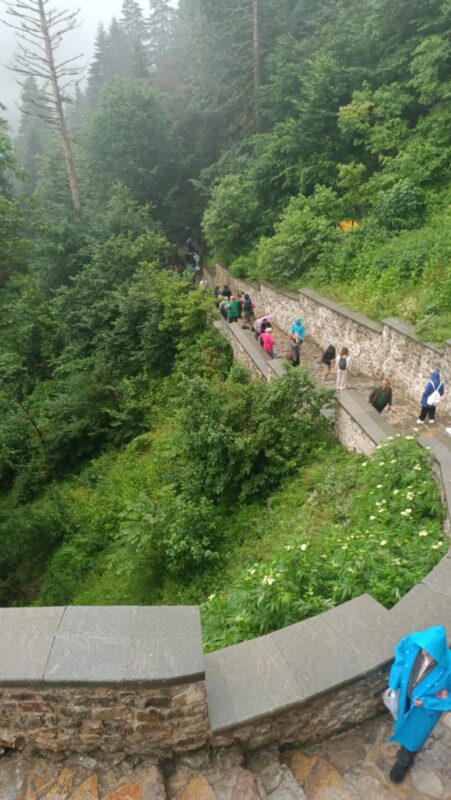 Yemek sonrası rota Maçka’ya Sümela Manastırına çevirildi.Manastıra çıkarken yanından geçilen şelale kendisine hayran bıraktı.