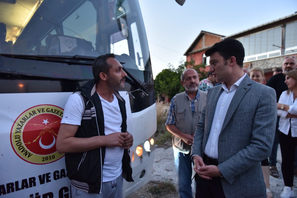 Kaymakam Yılmaz ve Başkan Şahin daha sonra gazetecilerle hatıra fotoğrafı çekildi. Heyet ardından konaklayacakları otele geçti.