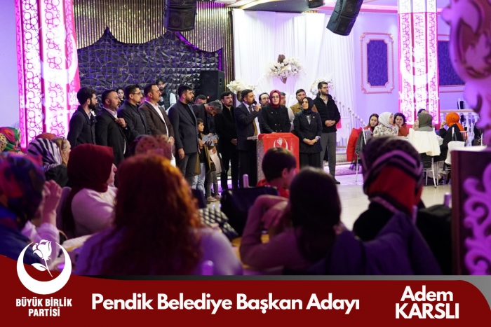 Büyük Birlik Partisi Pendik Belediye Başkan Adayı Adem Karslı tarafından, kadınlar gününe özel organize edilen "Kadınlar Kavuştayı" programı 8 Mart Cuma günü Pendik Işılay Düğün Salonu'nda gerçekleşti.