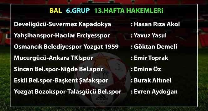 Bölgesel Amatör Lig 6.Grup’ta oynanacak 13.hafta maçlarını yönetecek hakemler ise şu şekilde: