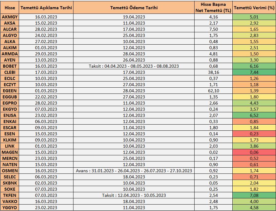 Temettü Takvimi
