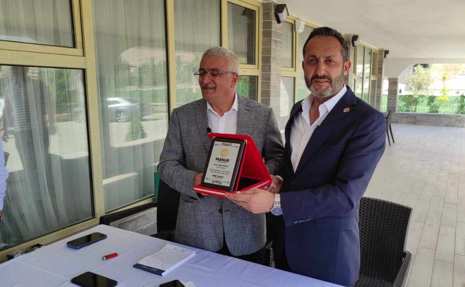 Pasinler Belediye Başkanı Ahmet Dölekli, AYGAD Başkanı Ahmet Işıkdağ’a başarılarından ötürü plaket hediye etti.