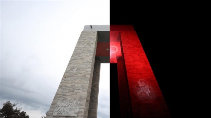 Yaklaşık 42 metre yükseklikteki Çanakkale Şehitler Abidesi, gece ve gündüz aynı açılardan görüntülendi.