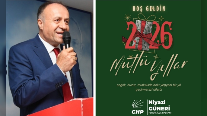 Cumhuriyet Halk Partisi, Pendik İlçe Başkanı Niyazi Güneri'den yeni yıl mesajı: 2026 yılının, ülkemize ve milletimize, sağlık, huzur ve mutluluk getirmesini dileriz...