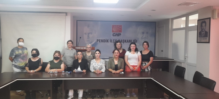 Şükran Baknur başkanlığındaki CHP Pendik Kadın Kolları, kadın örgütü ile basın açıklamasını ilçe binasında yaptı.