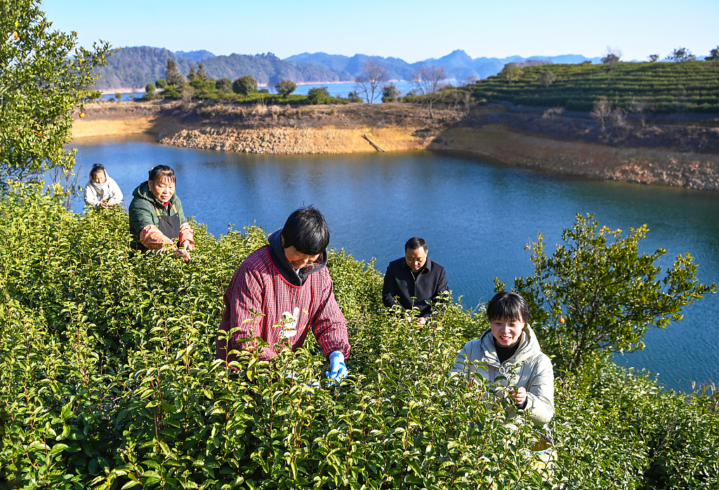 Zhejiang eyaletinin Hangzhou kentinin Qiandaohu Gölü bölgesindeki çay tarlalarında çalışan çiftciler