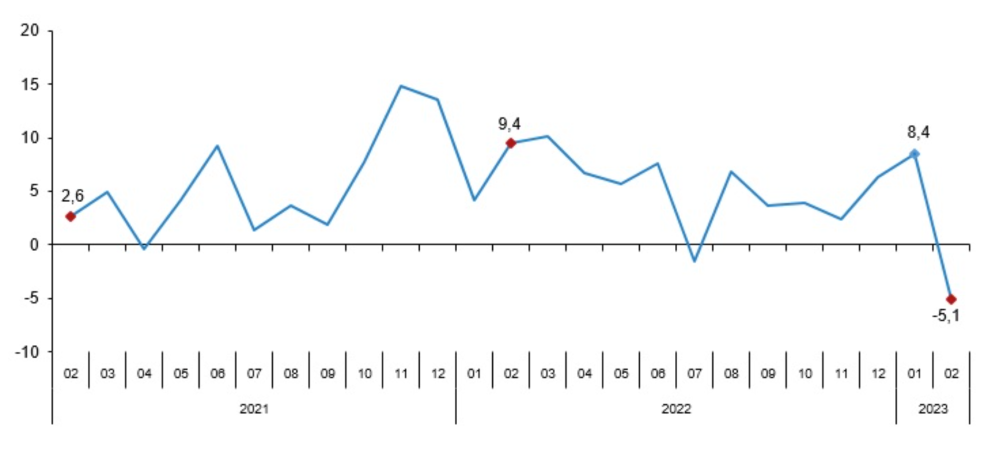 Toplam ciro aylık değişim oranı (%), Şubat 2023