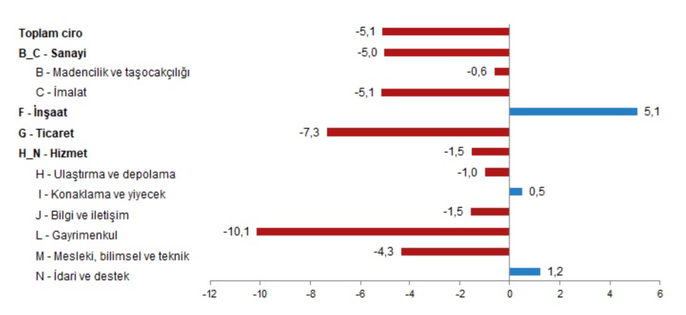 Toplam ciro aylık %5,1 azaldı
