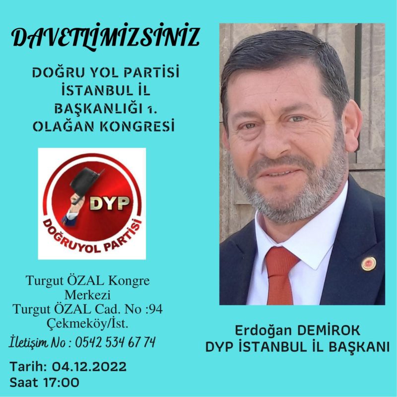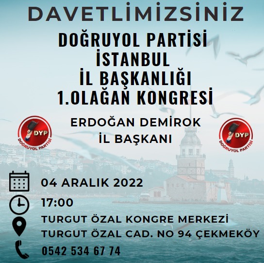 Doğruyol Partisi İstanbul İl Başkanlığı 1. Olağan kongresi 4 Aralık Pazar günü, Turgut Özal Kongre Merkezinde gerçekleşti.