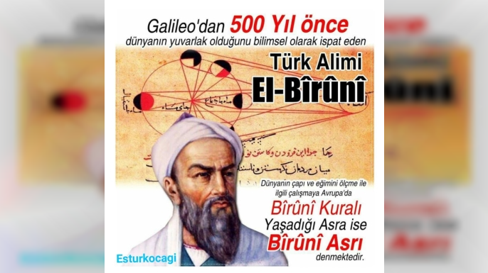 Dünyanın yuvarlak olduğunu bilimsel kanıtlarla açıklayan ilk kişi ise 970-1050 arasında yaşayan Türk Âlim, El-Bîrûnî'dir.