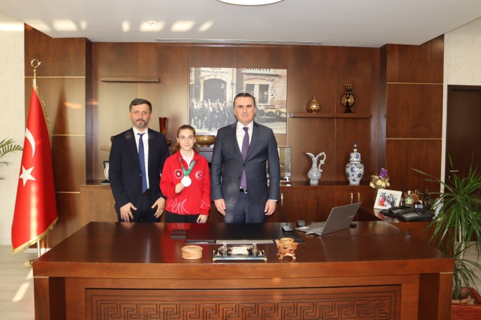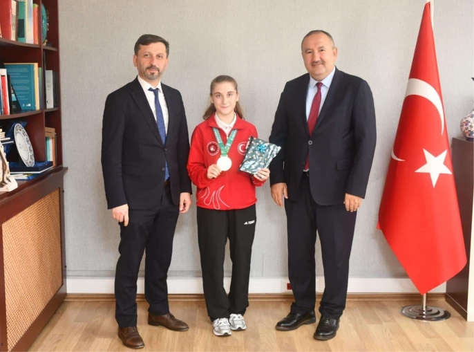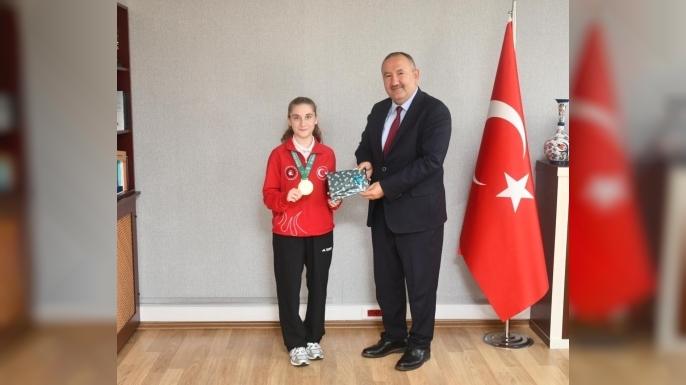 Pendik Kaymakamı Mehmet Yıldız da Wushu–Kung Fu branşında ülkemizi gururlandıran Sude Merve Altun’u ve okul müdürü Osman Kılıç’ı makamında kabul etti.