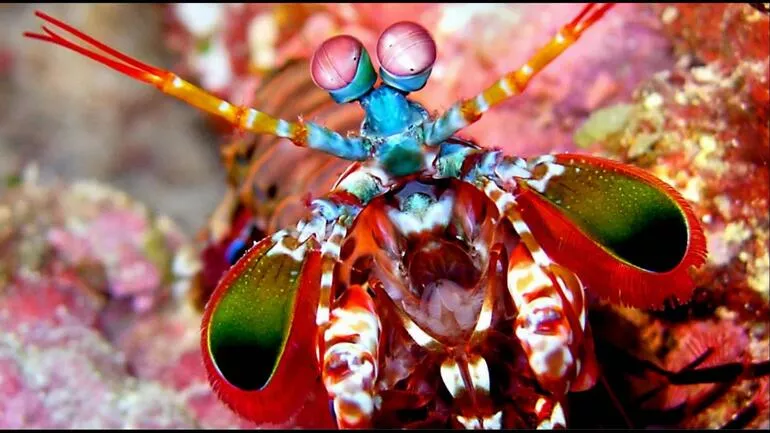 Mantis karidesinin gözünde 12 renk reseptörü vardır. Yeri geldiğinde kıskaçlarıyla 80 kph’lik bir hızla rakiplerine vurabilirler.