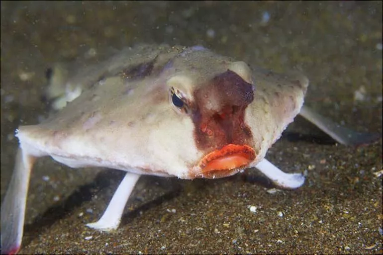 Galapagos adalarında denizin 30 metre veya daha altında bulunan bu garip görünümlü balığın boyu 40 cm’ ye kadar ulaşabilir. İyi bir yüzücü olmadığı için deniz yüzeyinde yürümek için göğüs yüzgeçlerini kullanır. Yüzmekten çok yürümeyi tercih ettiği söylenilen balığımızın deniz tabanına oturduğu da söylenenler arasında. Erişkinliğe erişen balıklarda sırt yüzeyi dikenli bir uzantıya dönüşür ve bu şekilde avlarını kendilerine çekerler. Kırmızı dudaklı bu şirin balığın nasıl bir evrimden geçtiğini düşünmek bile insanı şaşırtabiliyor.