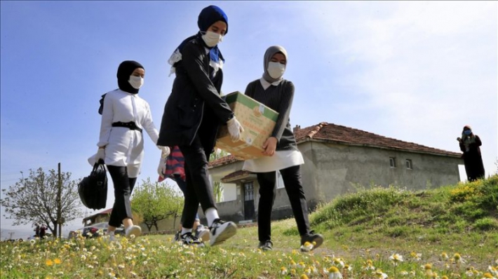 TOKİ Şehit Arif Güneş Çok Programlı Anadolu Lisesinde okuyan kız öğrenciler kırsalda yaşayan dezavantajlı ailelere ramazan paketi dağıtıyor, kronik rahatsızlığı bulunanların ateş, tansiyon ve şeker ölçümlerini yapıyor.