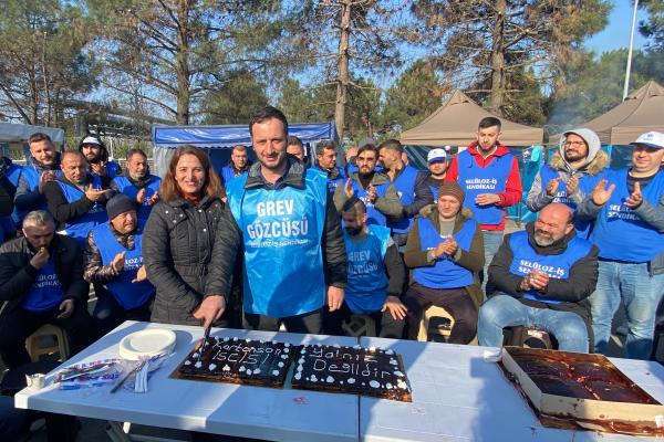 İlk günden bu yana greve destek olmaya çalıştıklarını ifade eden Erkan, “Fabrika önlerinde mahallelerde Kartonsan işçileriyle direnişi büyütme çağrısı yapıyoruz. Çünkü biliyoruz ki Kartonsan işçisi kazanırsa, Bekaert işçisi kazanırsa Türkiye işçi sınıfı kazanacak. 2022’yi geride bırakırken bizlerin daha çok yan yana gelmeye, daha çok gücünü birleştirmeye ihtiyacımız var. Bu yılı uğurlarken şuna inanıyoruz ki 2023’te Kartonsan işçileri bu kapıdan içeri hem kendi yüzünü, hem çocuklarının yüzünü güldürecek bir anlaşmaya kazanarak içeri gireceklerdir” ifadelerini kullandı.
