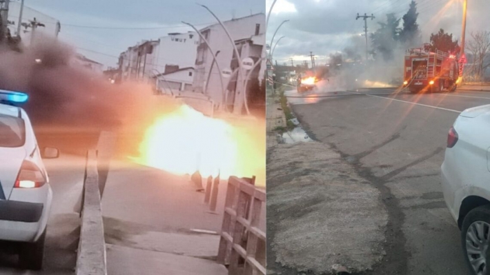 M.A.’nın yol kenarına çekip indiği otomobil, alev alıp yanmaya başladı. İhbar üzerine bölgeye, itfaiye ve jandarma ekipleri sevk edildi.