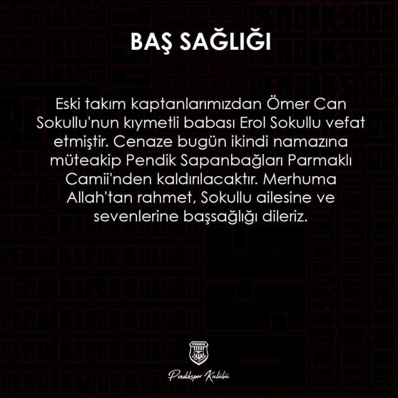 Geçmiş yıllarda Pendikspor’da oynayan ve attığı çok sayıda golle takıma büyük katkılar sağlayan, Boluspor forması giyen değerli ismi Erol Sokollu geçirdiği kalp krizi sonucu Hakk’ın rahmetine kavuştu.