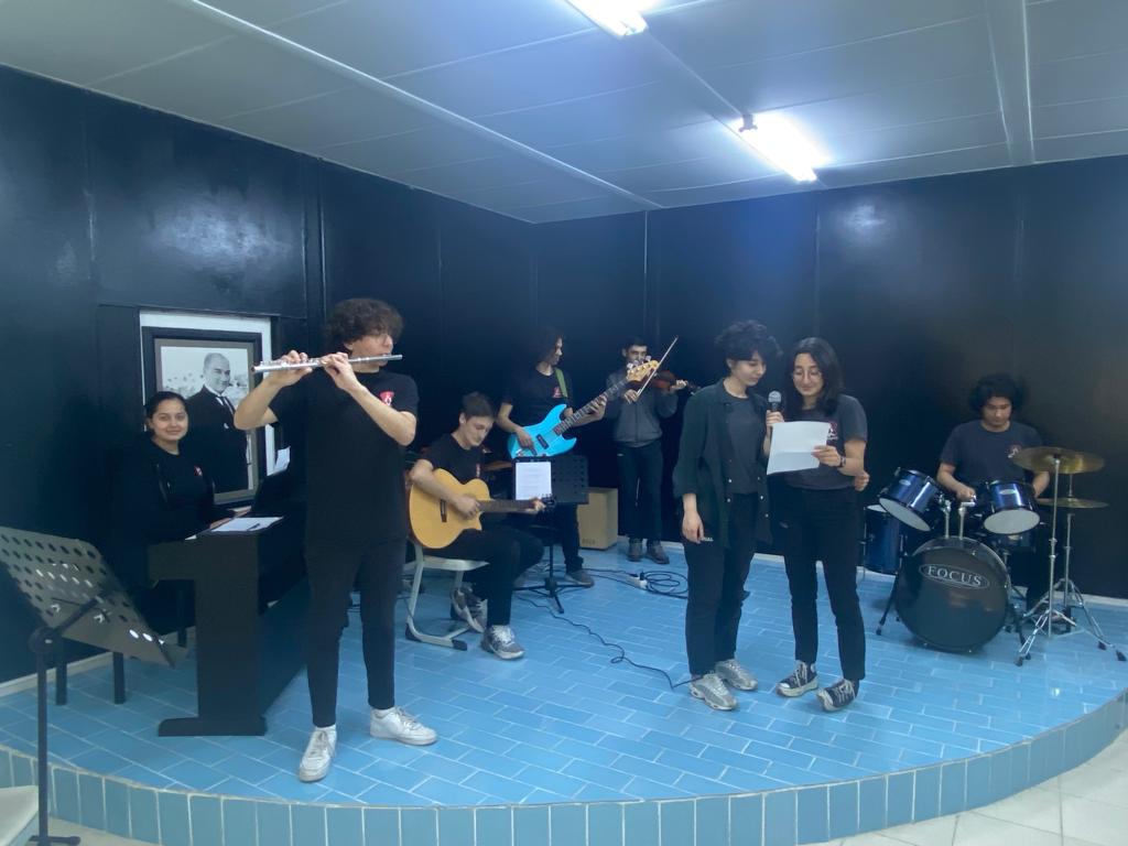 Müzik Öğretmenleri Pınar Yılmaz ve Elif Yalçın’ın çalıştırıp hazırladığı okul öğrencileri; bas gitar, elektronik gitar, akustik gitar, piyano, bateri, yan flüt gibi bir çok müzik aleti ile profesyonel düzeyde bir performans icra edecekler.