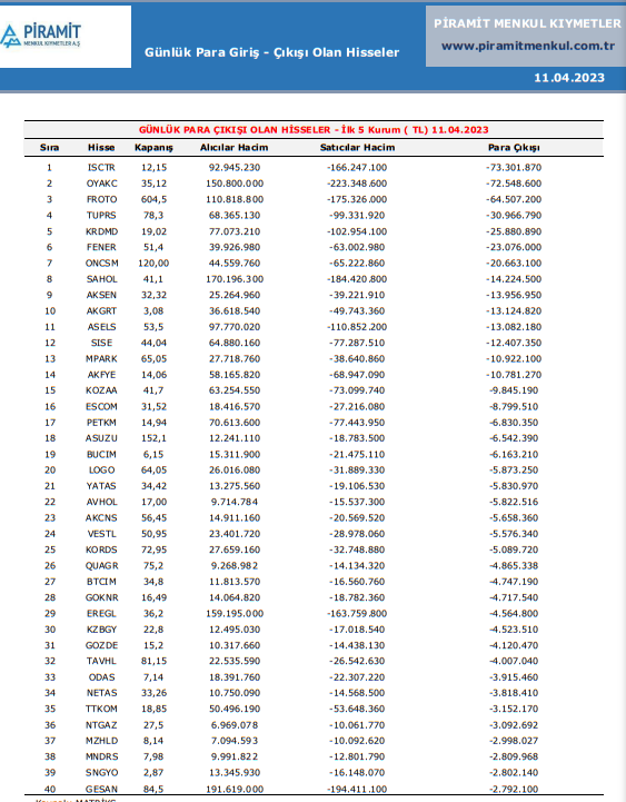 -Hissede yükseliş ve para çıkışı tıpkı anda oluyorsa, direnç noktalarından gelebilecek muhtemel satışlara dikkat edilmesi gerektiği,