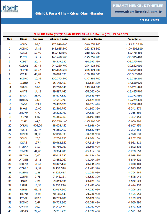 -Hissede yükseliş ve para çıkışı tıpkı anda oluyorsa, direnç noktalarından gelebilecek mümkün satışlara dikkat edilmesi gerektiği,