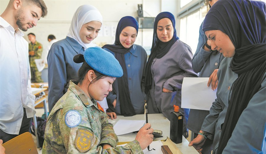 BM Çince Günü yaklaşırken, Çin’in Lübnan’daki BM barış muhafaza misyonuna gönderdiği 21. kümedeki askerler mahallî Rahman Yunus Ortaokulu’nda Çince dersi verdiler.