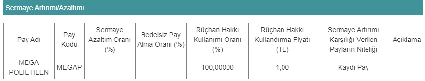 13.04.2023 tarihinden itibaren hak kullanımı süreçleri nedeniyle ilgili hakları kullanılmış olarak süreç görecek hisselerin listesi şöyle: