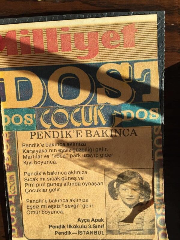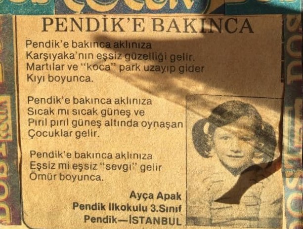 Pendik İlkokulu öğrencisi Ayşe Apak’ın yazdığı “Pendik’e Bakınca” şiiri;