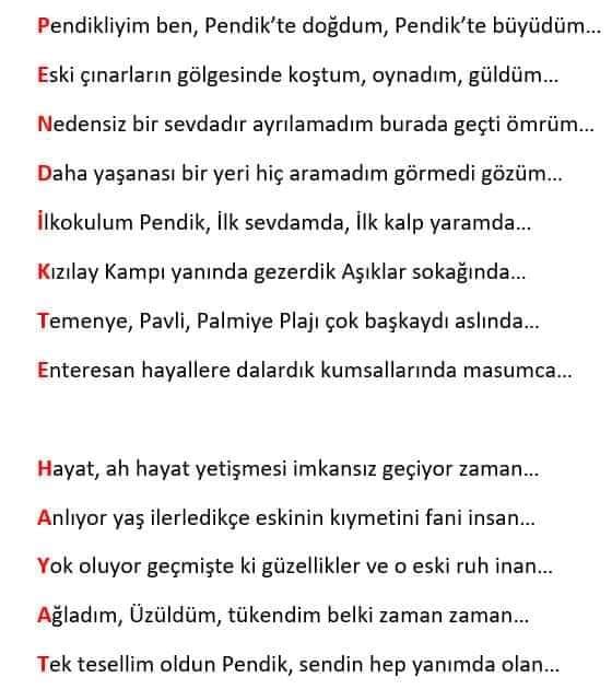 Bu sefer de Pendik’in eski dönem öğrencilerine ve pendik şahıslarına ait kalplerinizi ısıtacak bir şiirler ile sizlerleyiz…