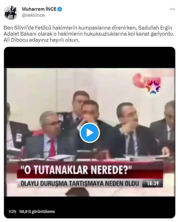 “Ben Silivri'de FETÖ’cü yargıçların kumpaslarına direnirken, Sadullah Ergin Adalet Bakanı olarak o yargıçların hukuksuzluklarına kol kanat geriyordu. Ali Dibo'cu adayınız güzel olsun.”