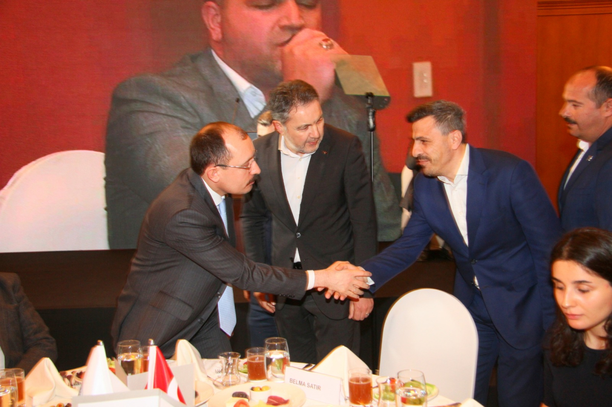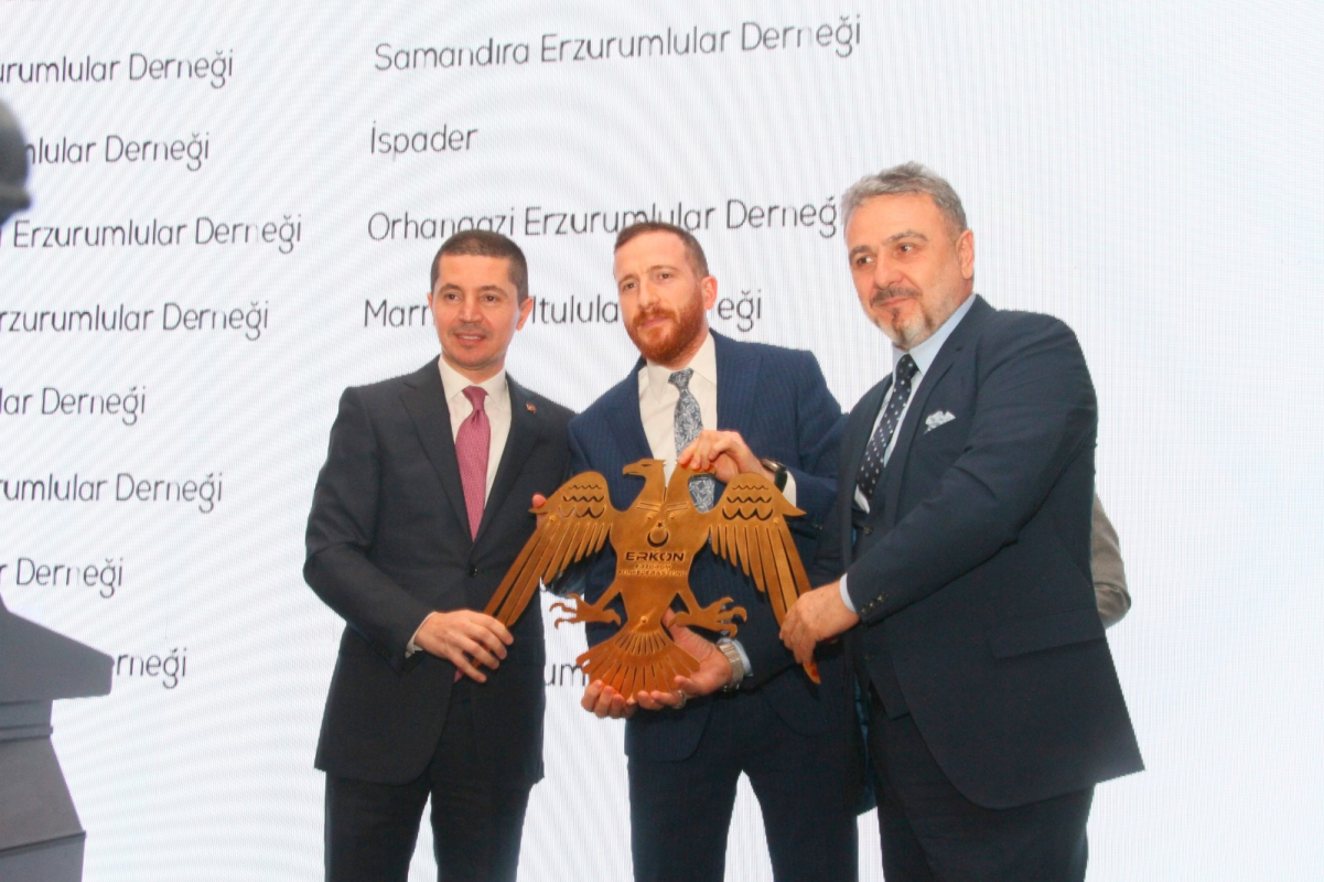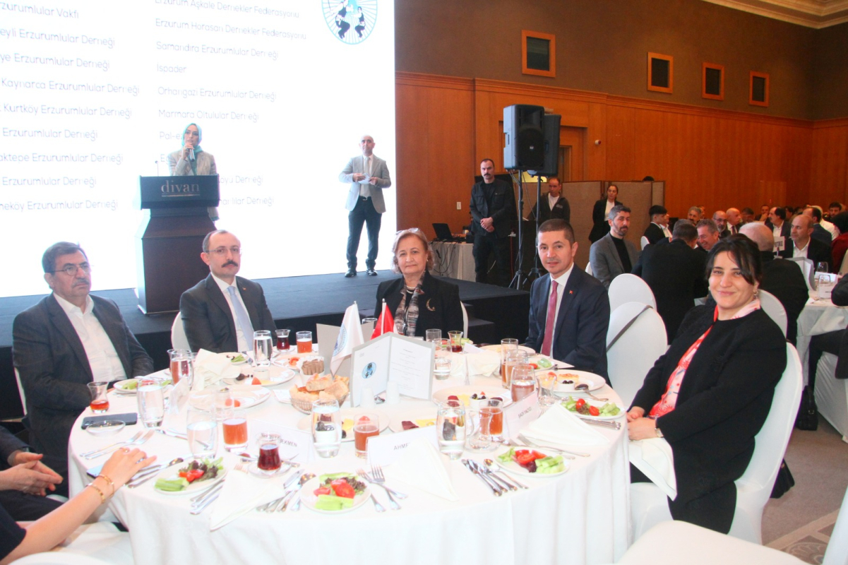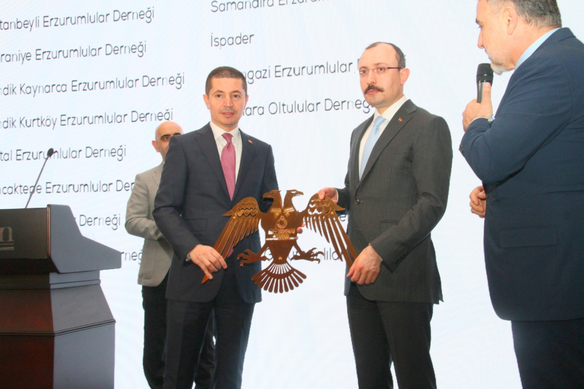 Program İstanbul Erzurumlular Vakfı Başkanı Murat Şahsuvaroğlu ve Erzurum Konfederasyonu ERKON Genel Başkanı Ali Murat Alatepe’nin Ticaret Bakanı Mehmet Muş’a plaket takdimiyle son buldu.